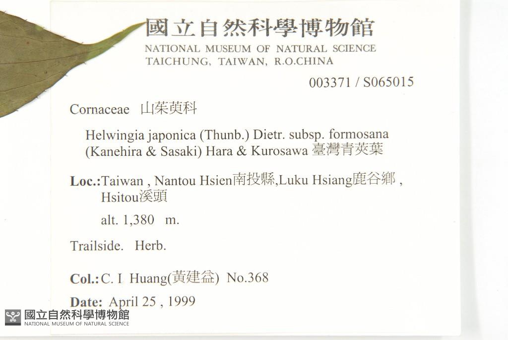 Scientific Name: Helwingia japonica (Thunb.) Dietr. subsp. formosana (Kanehira & Sasaki) Hara & Kurosawa