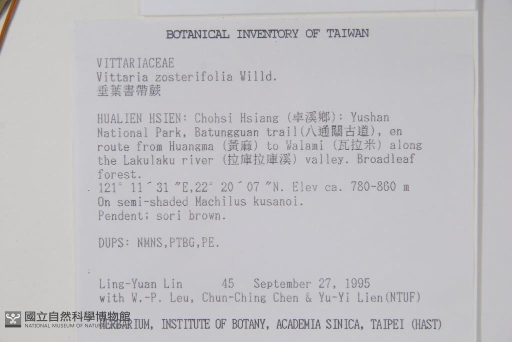 Collector:L. Y. Lin, W. P. Leu, C. C. Chen & Y. Y. Lien