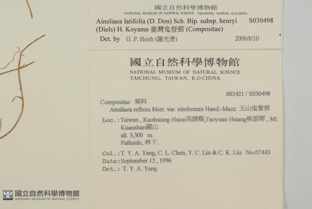 Scientific Name: Ainsliaea latifolia (D. Don) Sch. Bip. subsp. henryi (Diels) H. Koyama