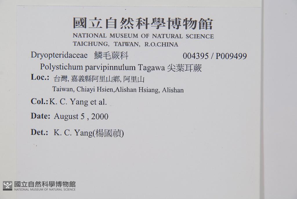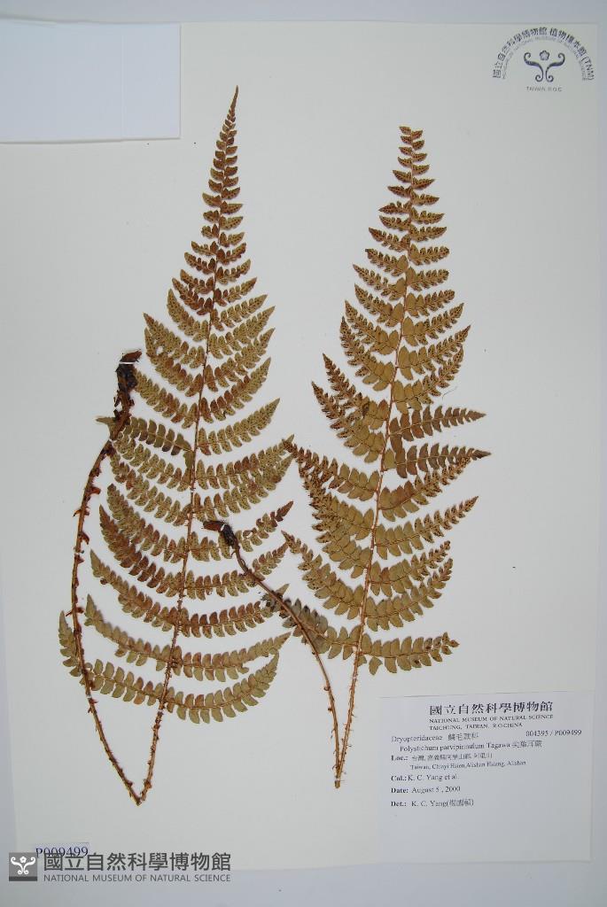 Scientific Name: Polystichum parvipinnulum Tagawa