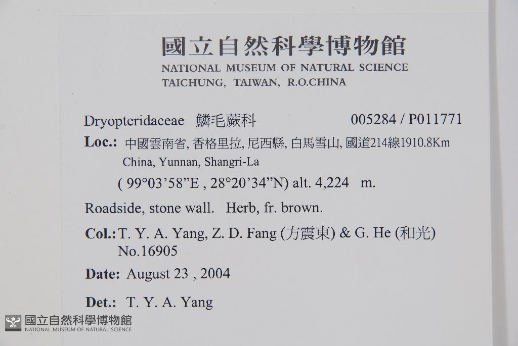 Collector:T. Y. A. Yang, Z. D. Fang (方震東) & G. He (和光)