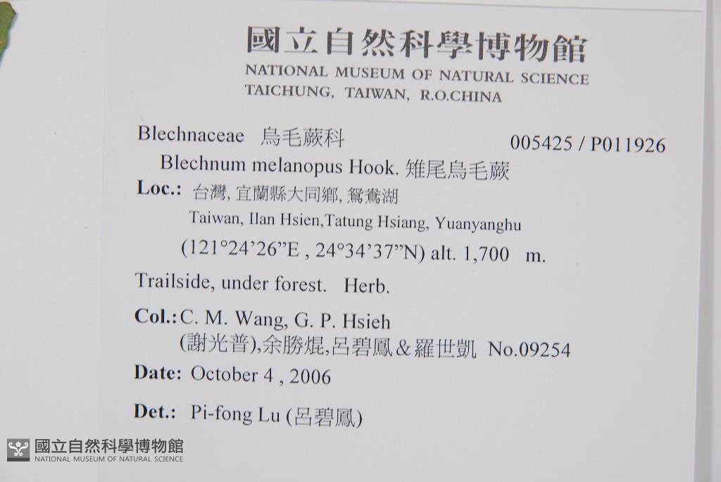 Collector:Chiu-Mei Wang (王秋美), Guang-Pu Hsieh (謝光普), Sheng-Kun Yu (余勝焜), & al.