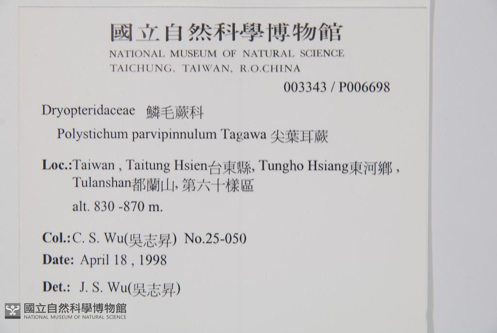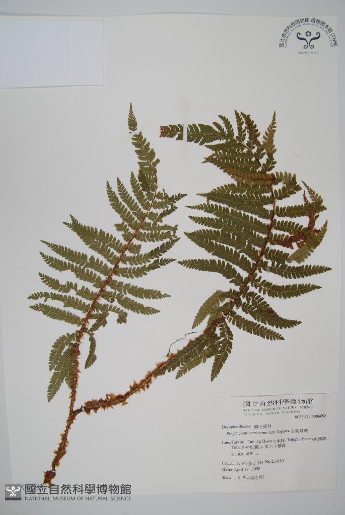 Scientific Name: Polystichum parvipinnulum Tagawa