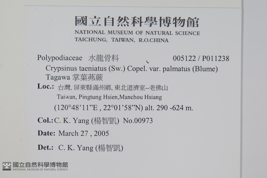 Scientific Name: Crypsinus taeniatus (Sw.) Copel. var. palmatus (Blume) Tagawa