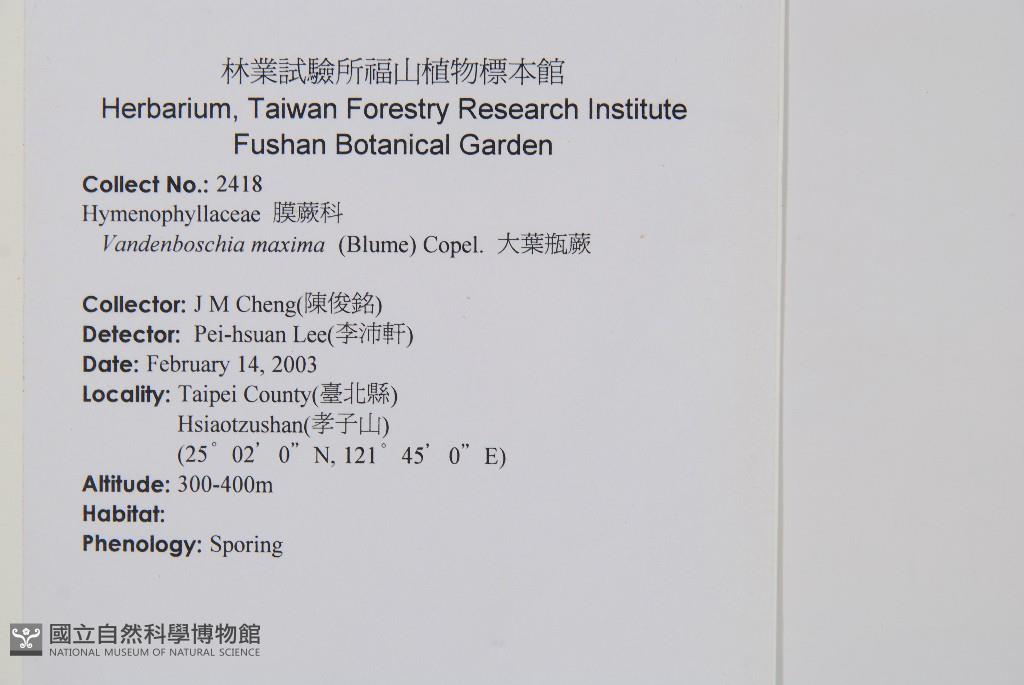 Scientific Name: Vandenboschia maxima (Blume) Copel.