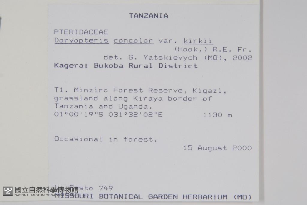 Scientific Name: Doryopteris concolor (Langsd. & Fisch.) Kuhn var. kirkii (Hook.) RE Fr.