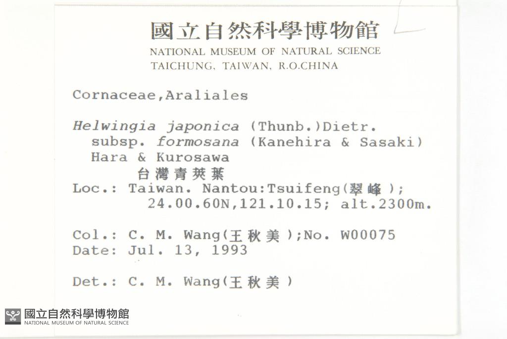 Scientific Name: Helwingia japonica (Thunb.) Dietr. subsp. formosana (Kanehira & Sasaki) Hara & Kurosawa
