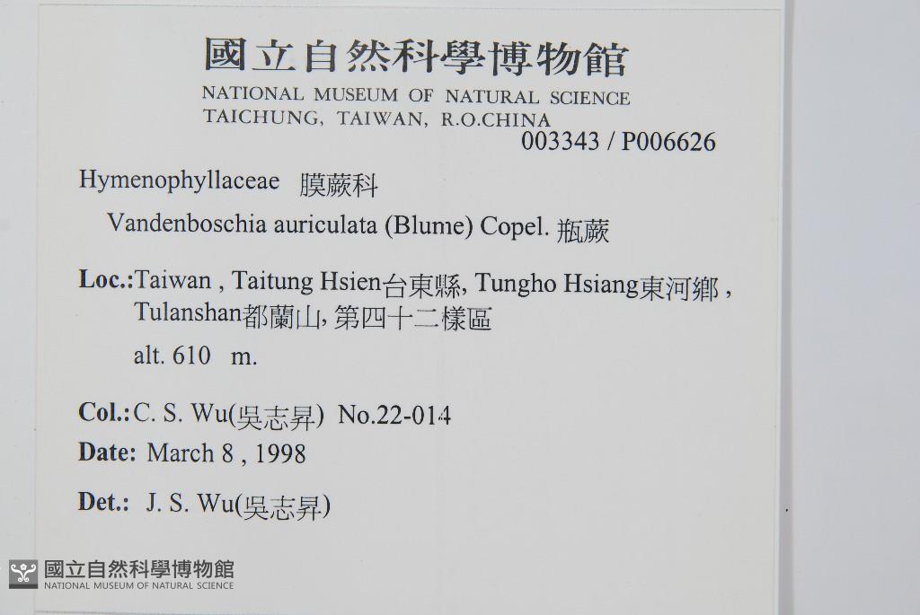 Scientific Name: Vandenboschia auriculata (Blume) Copel.