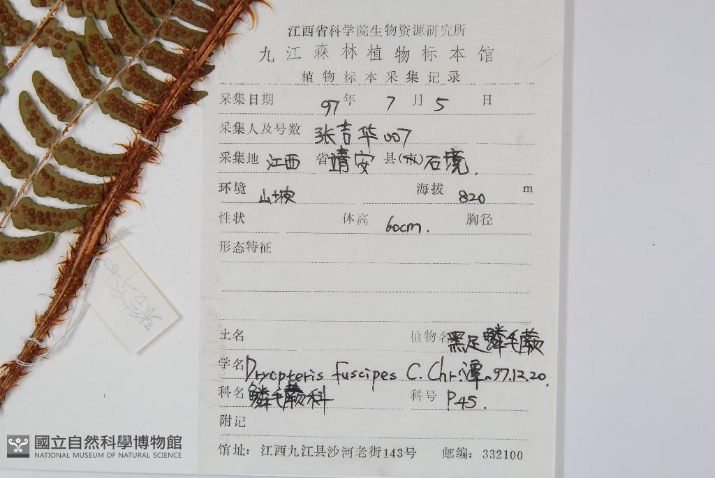 Scientific Name: Dryopteris fuscipes C. Chr.