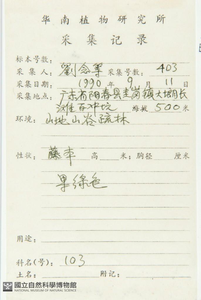 Collector's No.:劉?0403