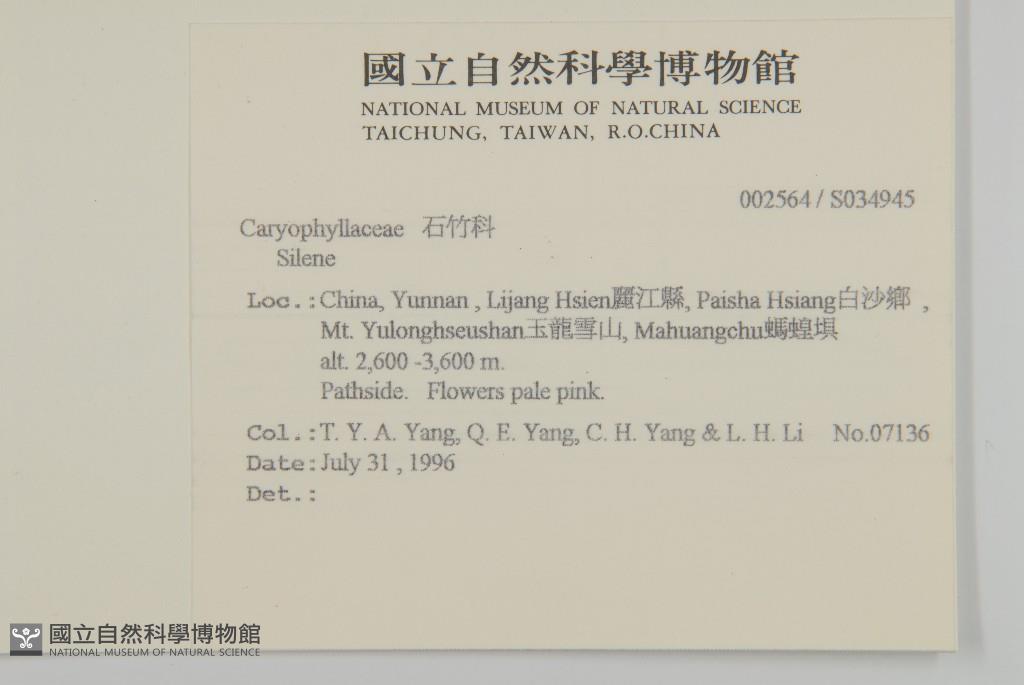Collector:T. Y. A. Yang, Q. E. Yang, C. H. Yang & L. H. Li