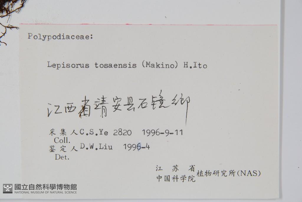 Scientific Name: Lepisorus tosaensis (Makino) H. Ito