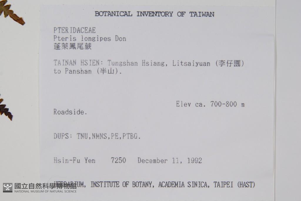 Scientific Name: Pteris longipes Don
