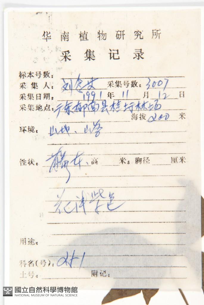 Collector's No.:劉?3007