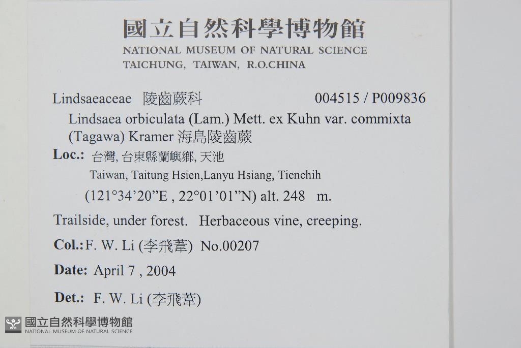 Scientific Name: Lindsaea orbiculata (Lam.) Mett. ex Kuhn var. commixta (Tagawa) Shieh