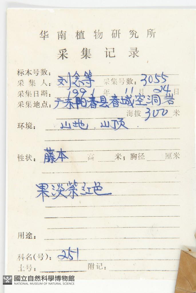 Collector's No.:劉?3055