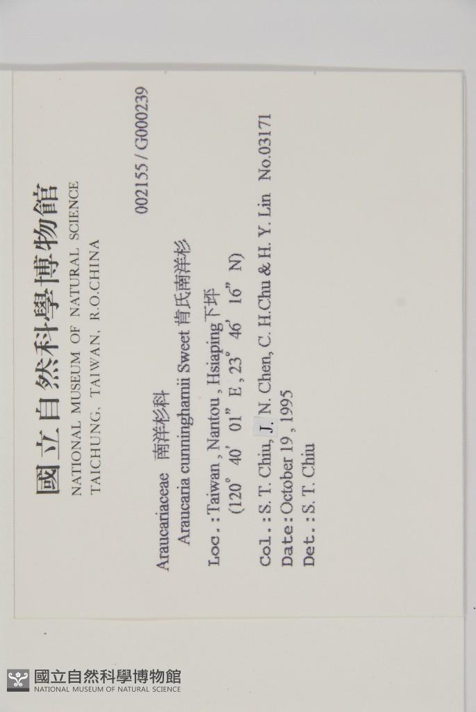 Collector:Shau-Ting Chiu (邱少婷), Jien-Nan Chen (陳建男), Che-Huei Chu (朱哲輝) & al.