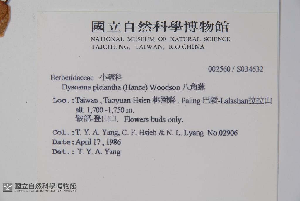 Collector:T. Y. A. Yang, C. F. Hsieh & N. L. Lyang