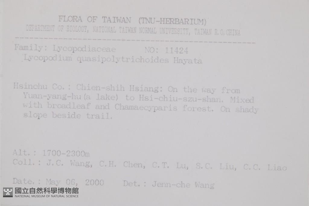 Collector:Jenn-Che Wang (王震哲), Chih-Hsiung Chen (陳志雄), Chang-Tse Lu (呂長澤) & al.