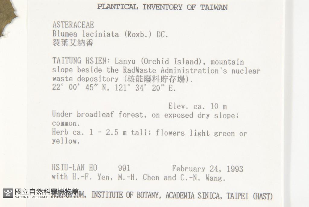 Collector:H. L. Ho, H. F. Yen, M. H. Chen & C. N. Wang