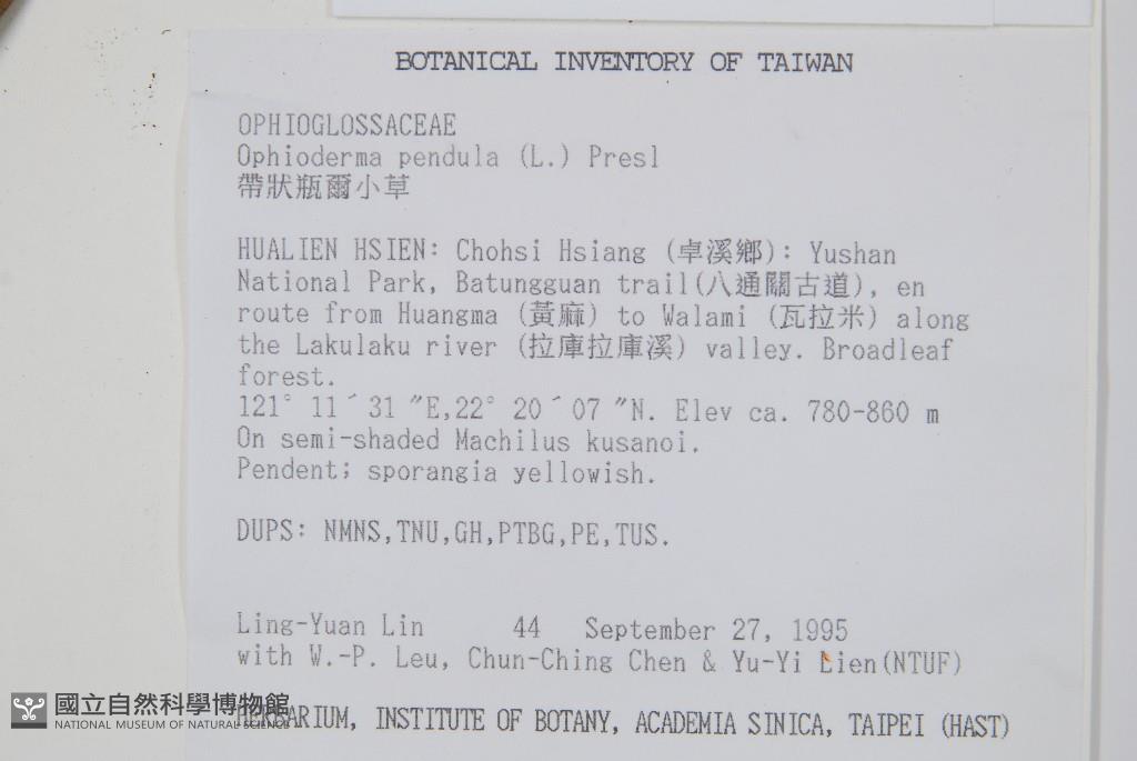 Collector:L. Y. Lin, W. P. Leu, C. C. Chen & Y. Y. Lien