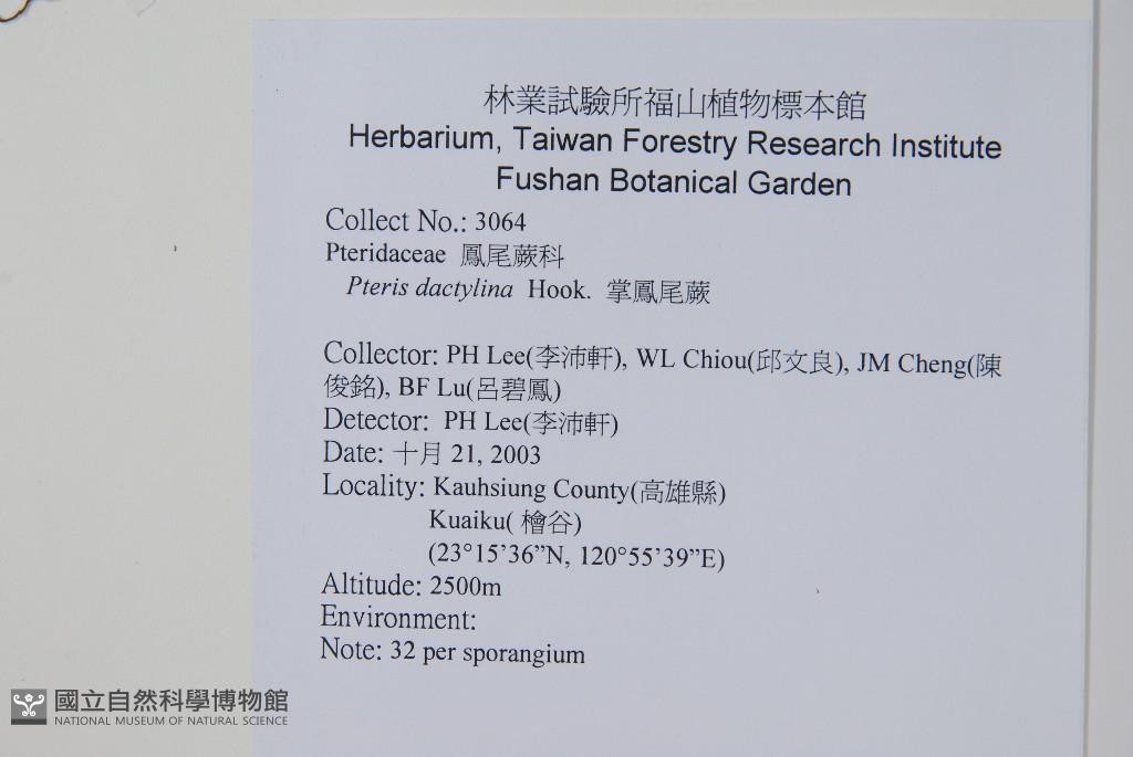 Collector:Pei-Hsuan Lee (李沛軒), WL Chiou (邱文良), Pi-Fong Lu (呂碧鳳) & al.
