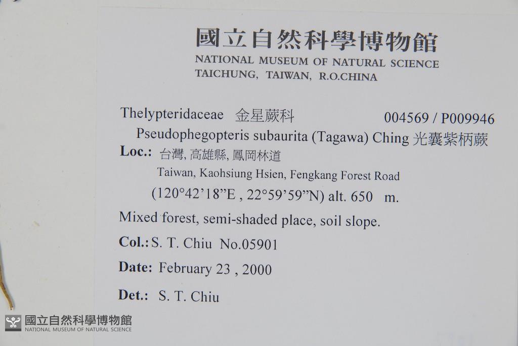 Scientific Name: Pseudophegopteris subaurita (Tagawa) Ching
