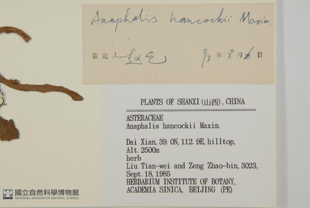 Scientific Name: Anaphalis hancockii Maxim.