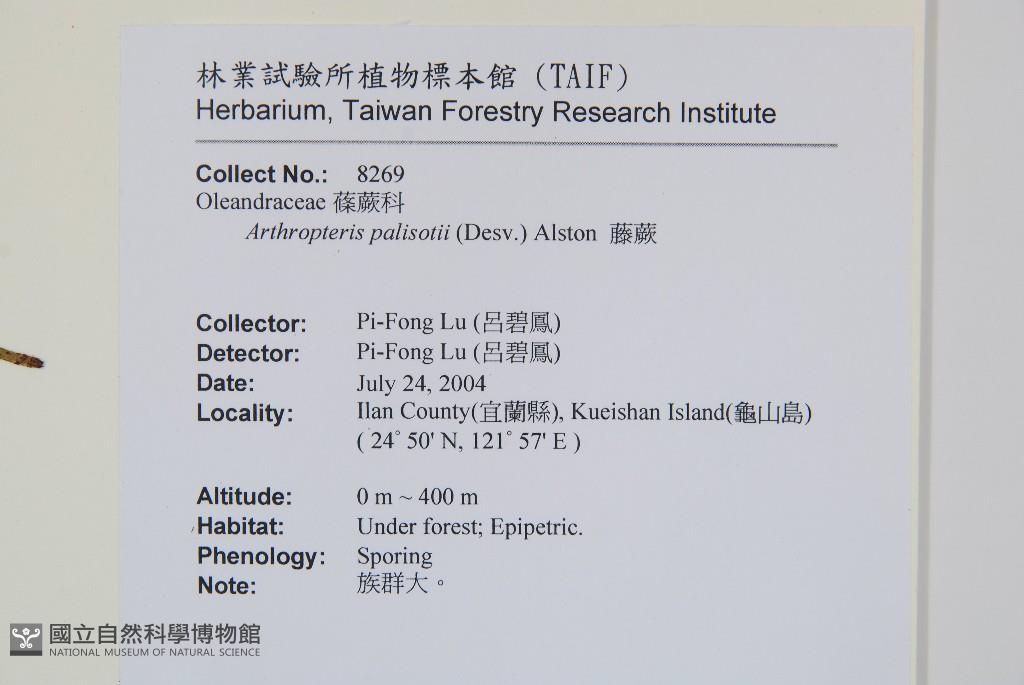 Scientific Name: Arthropteris palisotii (Desv.) Alston