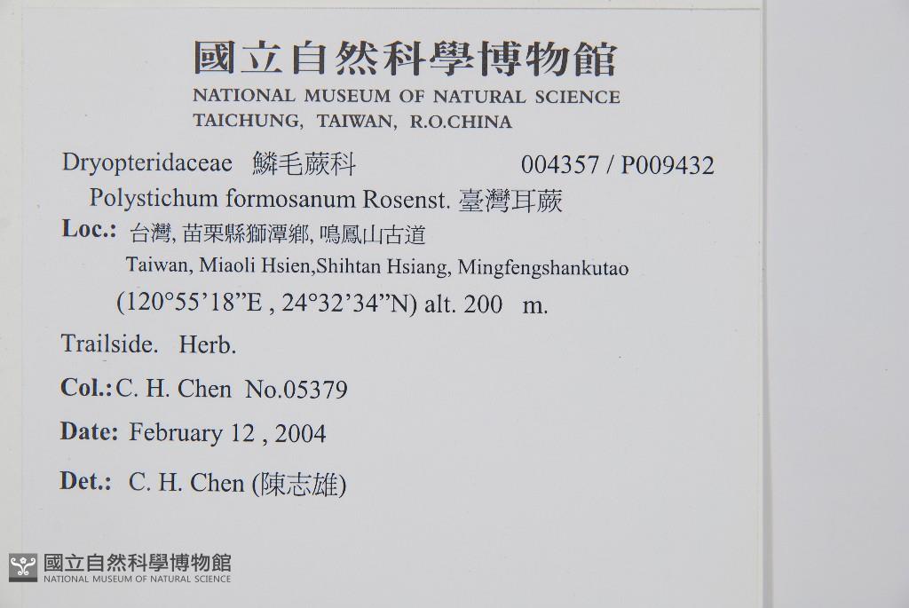 Scientific Name: Polystichum formosanum Rosenst.