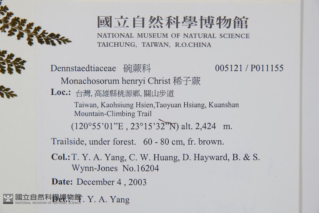 Scientific Name: Monachosorum henryi Christ
