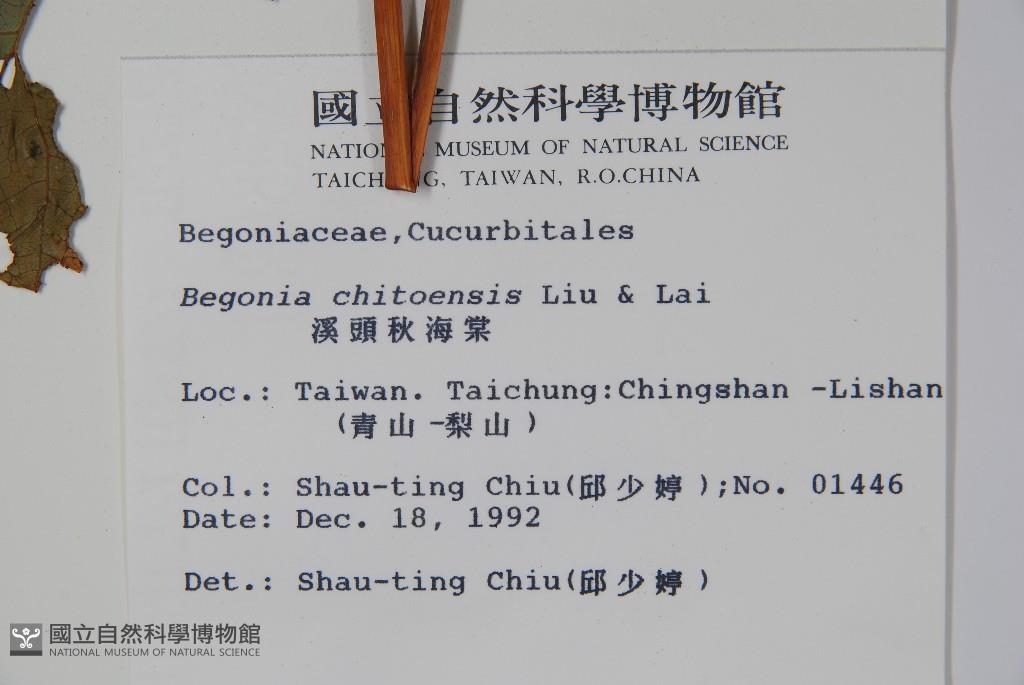 Scientific Name: Begonia chitoensis T.S.Liu & M.J.Lai