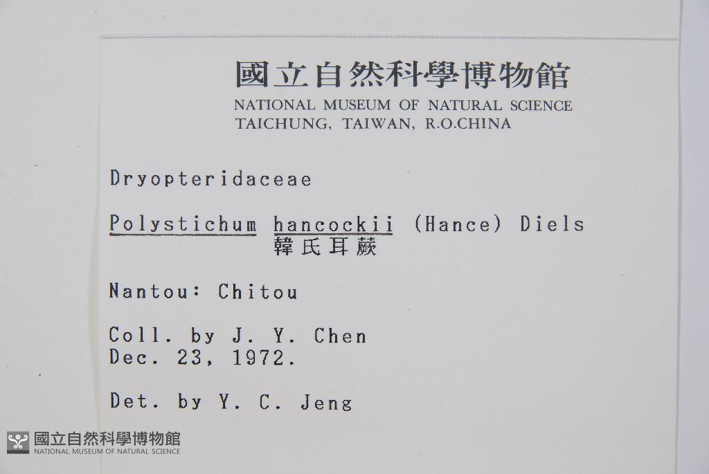 Scientific Name: Polystichum hancockii (Hance) Diels