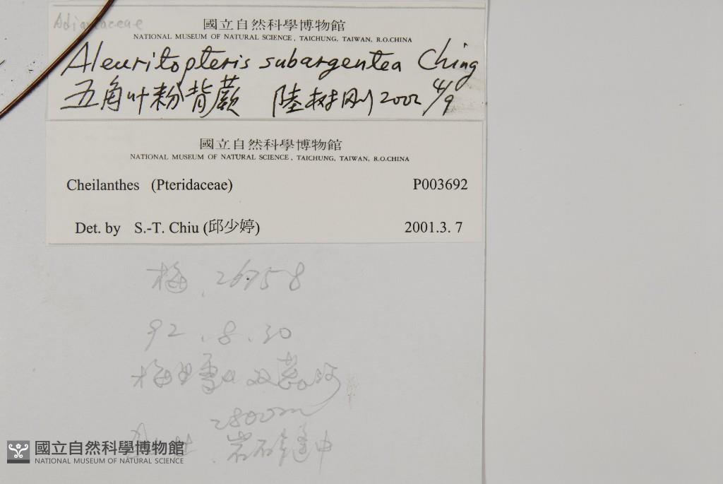 Scientific Name: Aleuritopteris subargentea Ching