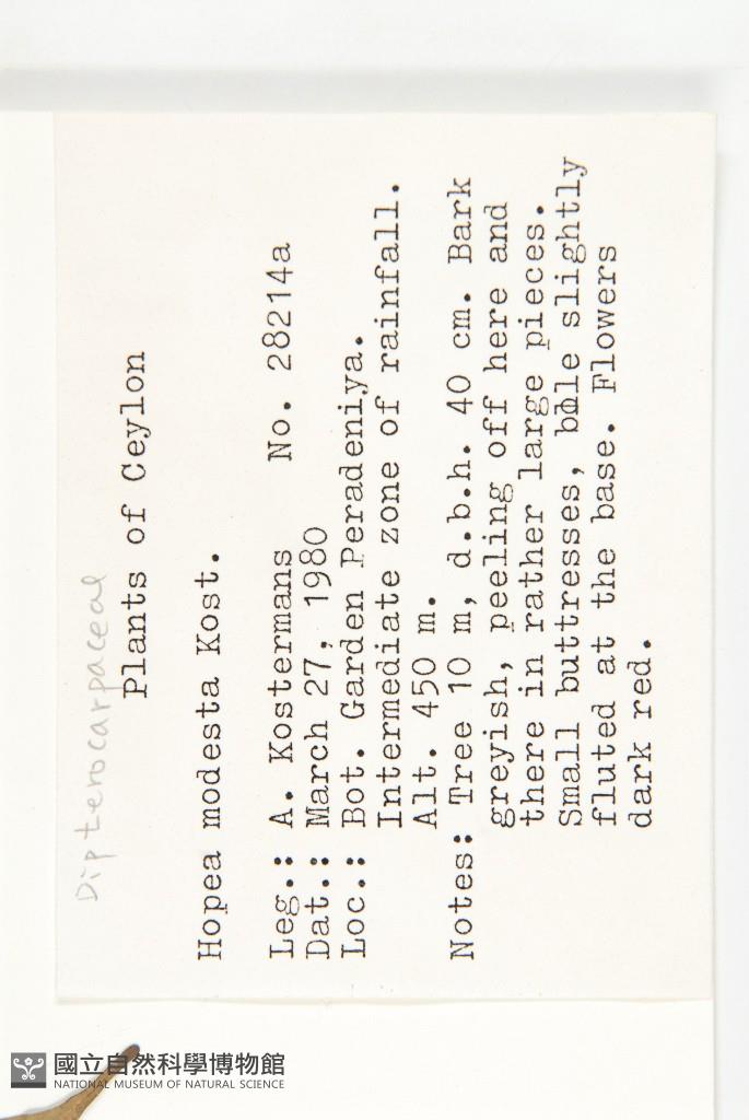 Scientific Name: Hopea modesta Thw. ex A. DC.