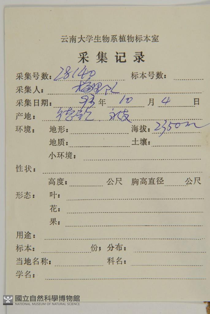Collector:MeiliXueishan Exped. (梅里隊)