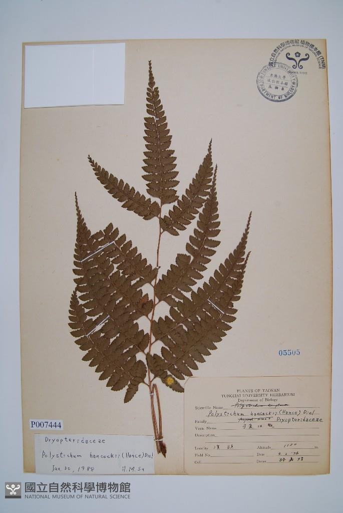 Scientific Name: Polystichum hancockii (Hance) Diels