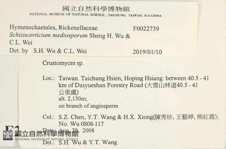 Schizocorticium mediosporum Sheng H. Wu & C.L. Wei