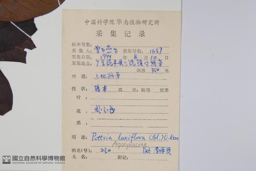 Scientific Name: Pottsia laxiflora (Bl.) O. Ktze.
