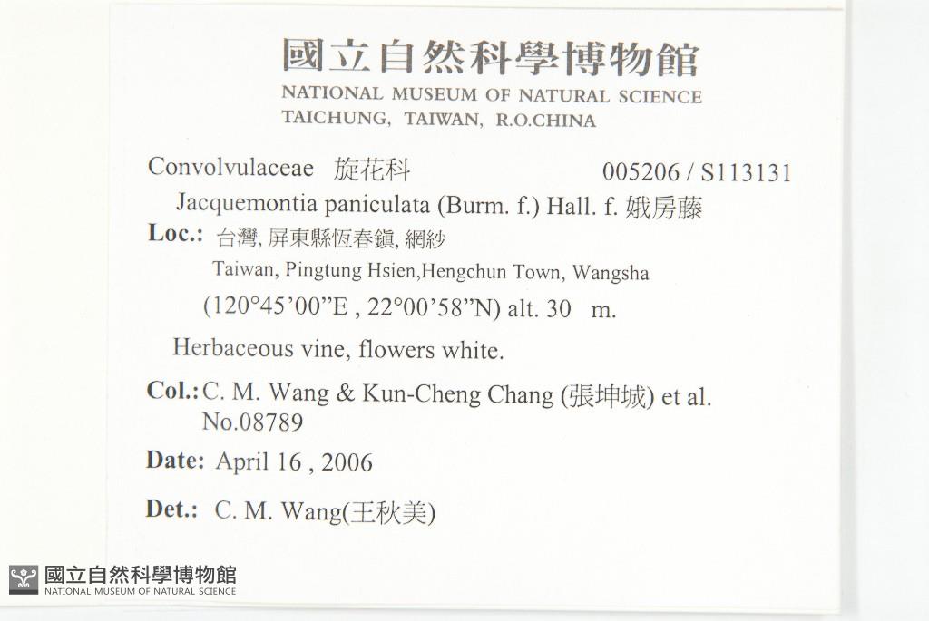 Collector:Chiu-Mei Wang (王秋美), Kun-Cheng Chang (張坤城), & al.