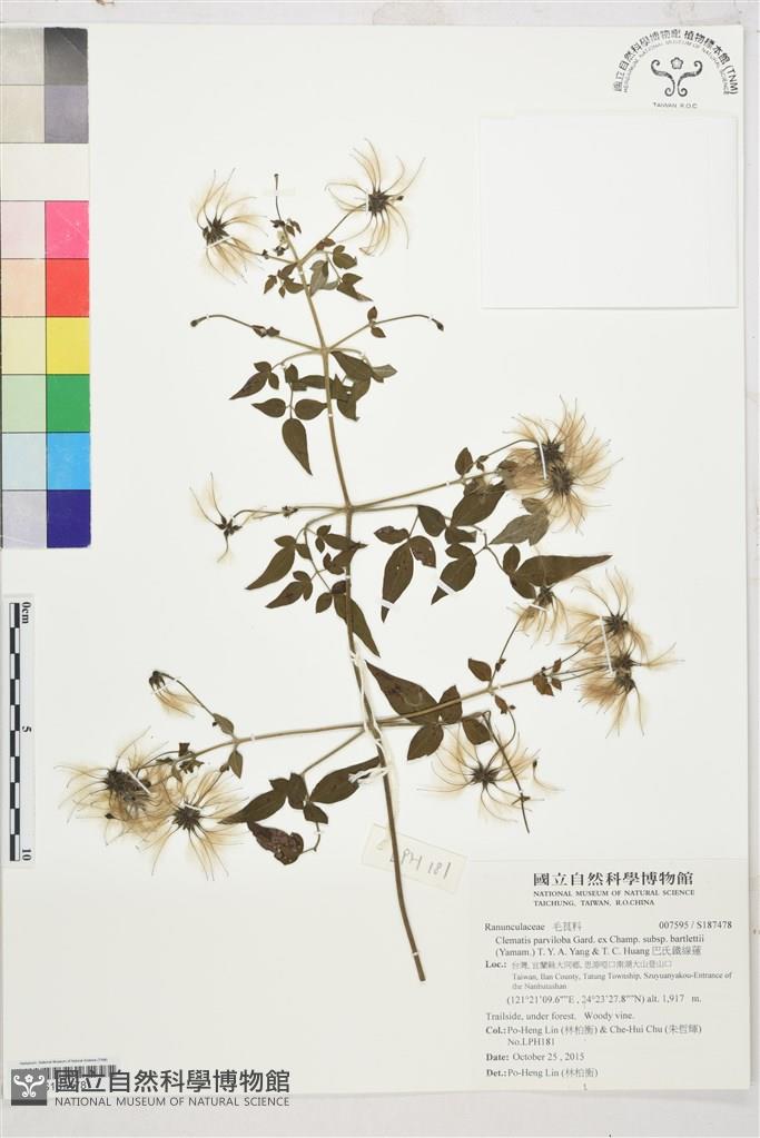 Scientific Name: Clematis parviloba Gard. ex Champ. subsp. bartlettii (Yamam.) T.Y.A. Yang & T.C. Huang
