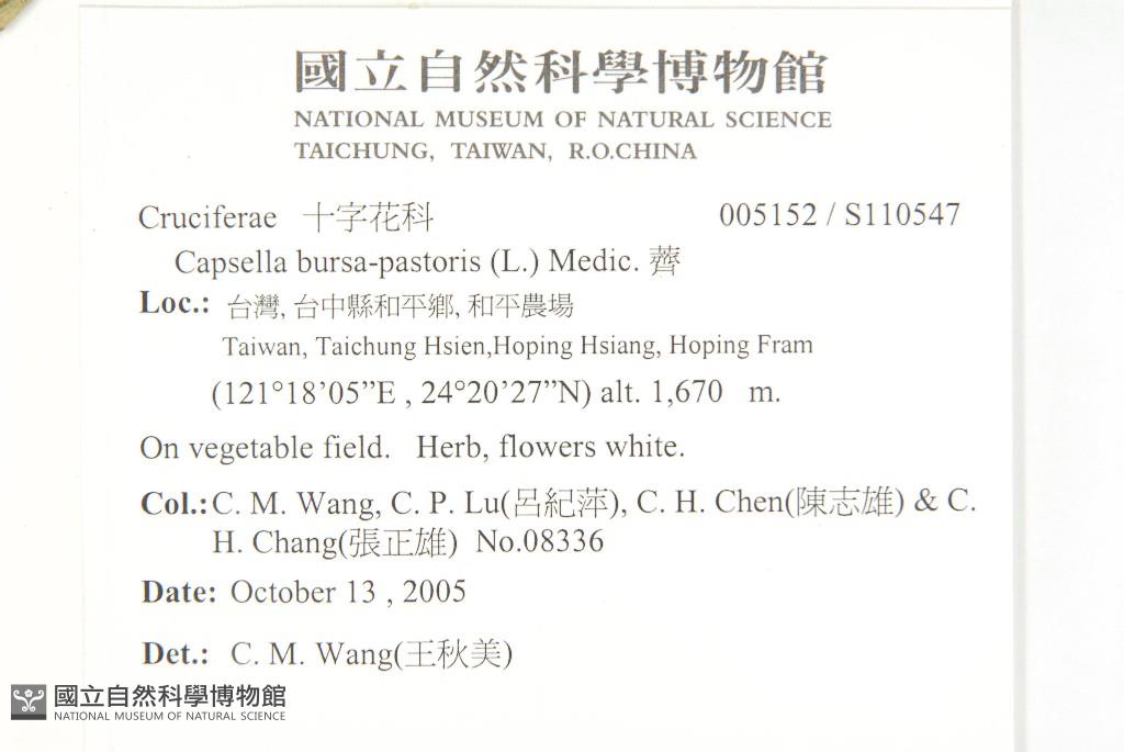 Collector:Chiu-Mei Wang (王秋美),Chi-Ping Lu (呂紀萍), Chih-Hsiung Chen (陳志雄) & al.