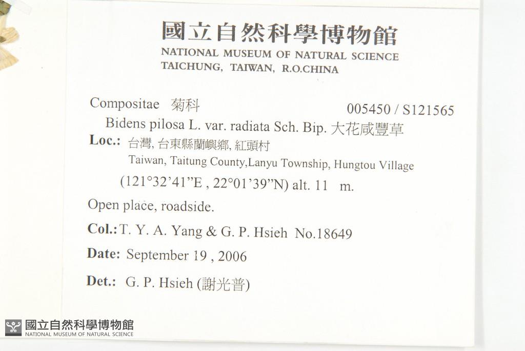 Scientific Name: Bidens pilosa L. var. radiata Sch. Bip.