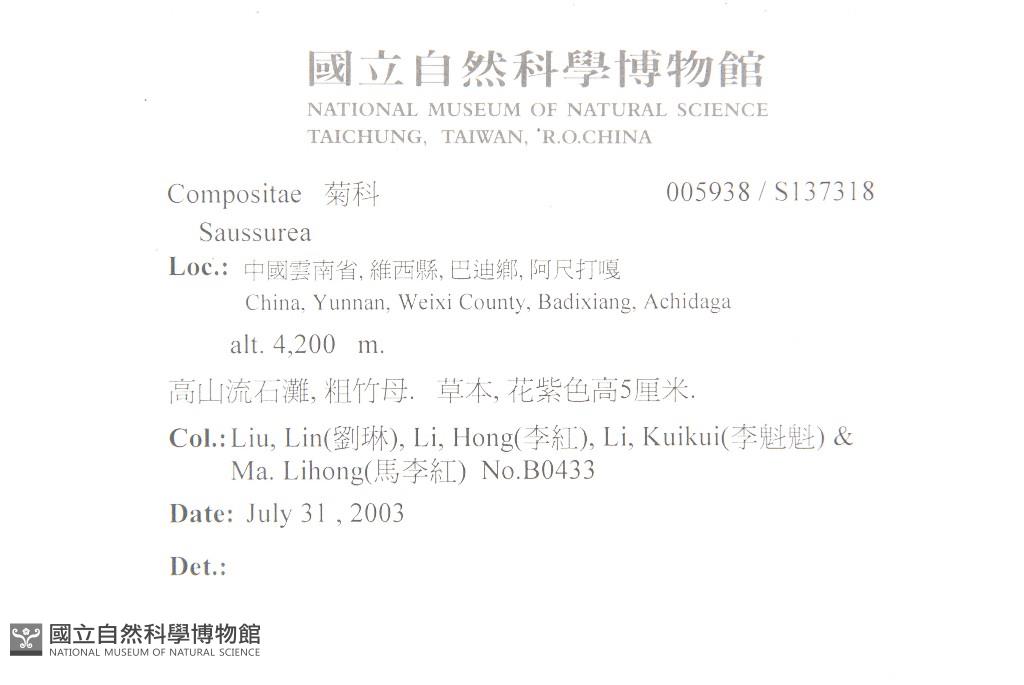 Collector:Lin Liu (劉琳), Hong Li (李紅), Kui-Kui Li (李魁魁) & Li-Hong Ma (馬李紅)