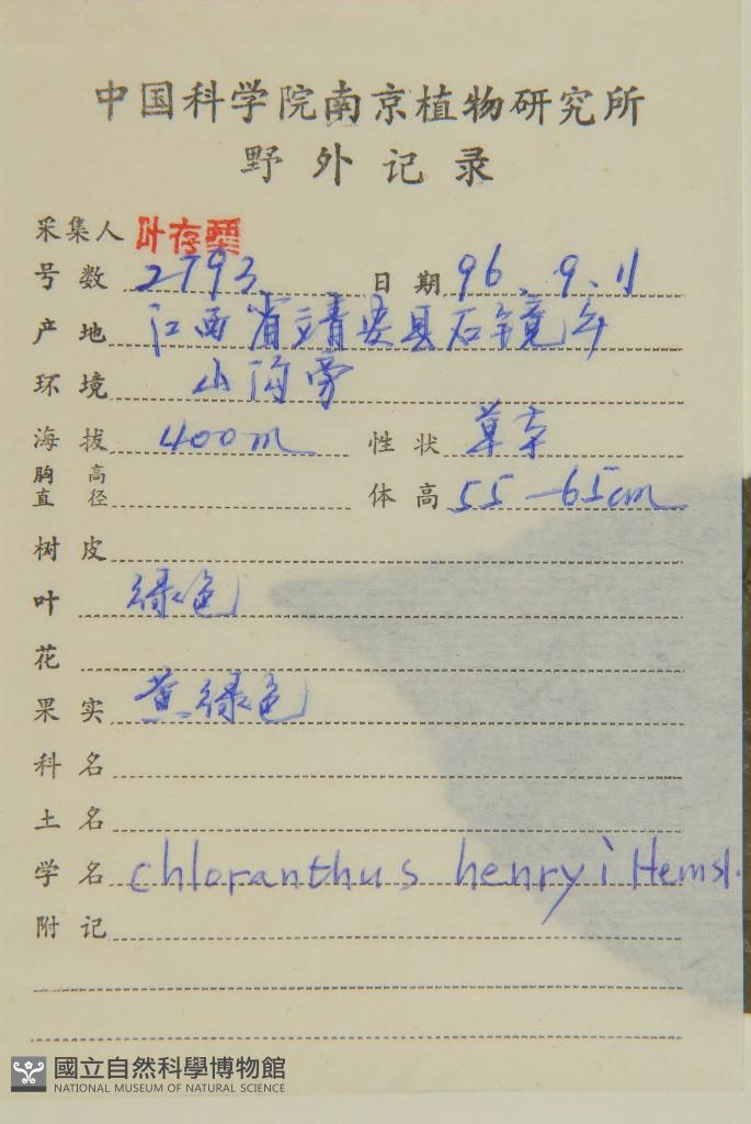 Collector:C. S. Ye(葉存粟)