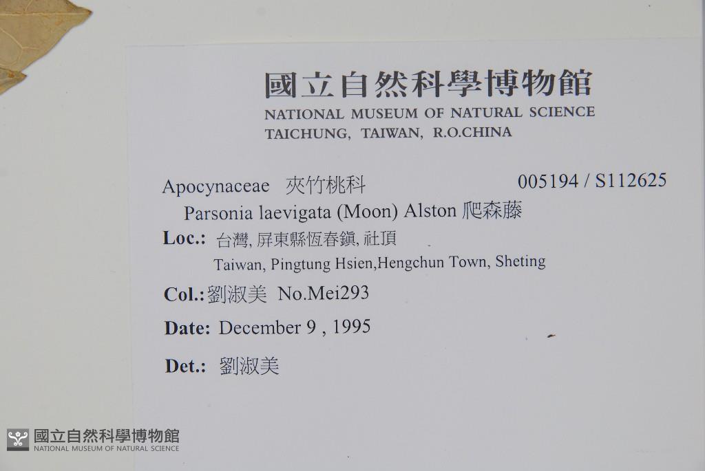 Scientific Name: Parsonsia laevigata (Moon) Alston