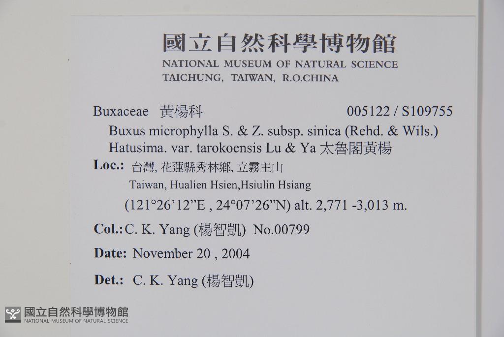 Scientific Name: Buxus microphylla S. & Z. subsp. sinica (Rehd. & Wils.) Hatusima. var. tarokoensis Lu & Yang