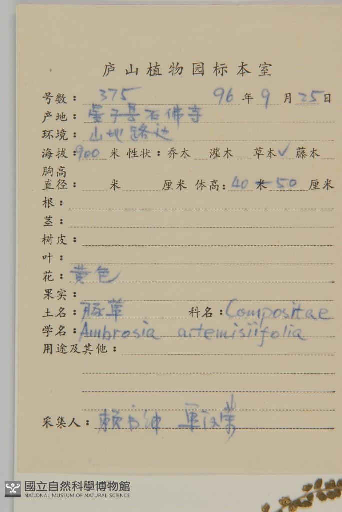 Collector:S. S. Lai & H. R. Shan