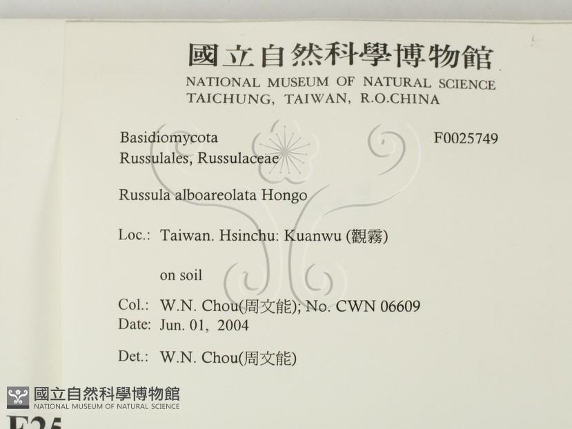 Russula alboareolata Hongo