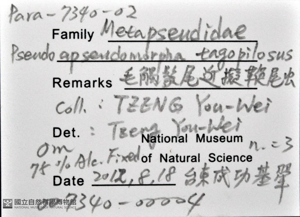 Scientific Name:Pseudoapseudomorpha tagopilosus Tzeng & Hsueh